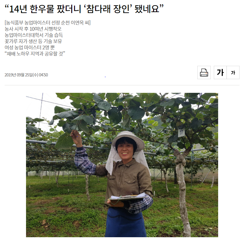 [광주일보] 농학과 순천 이연옥님: '참다래 장인'동학. 동문. 동행 2019. 9. 25. 11:01