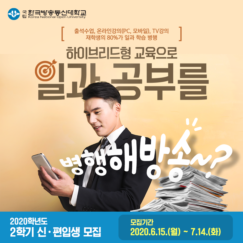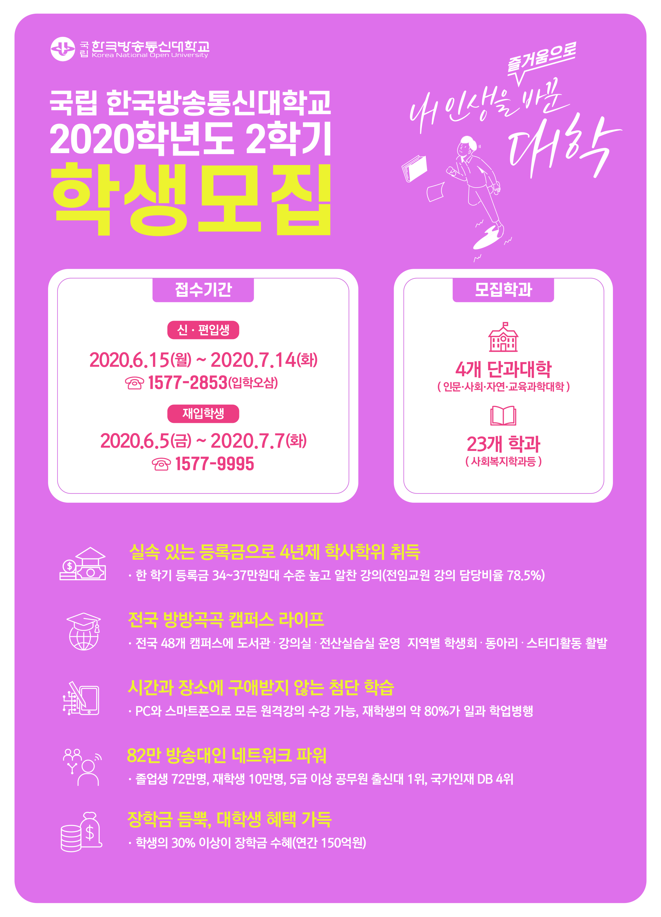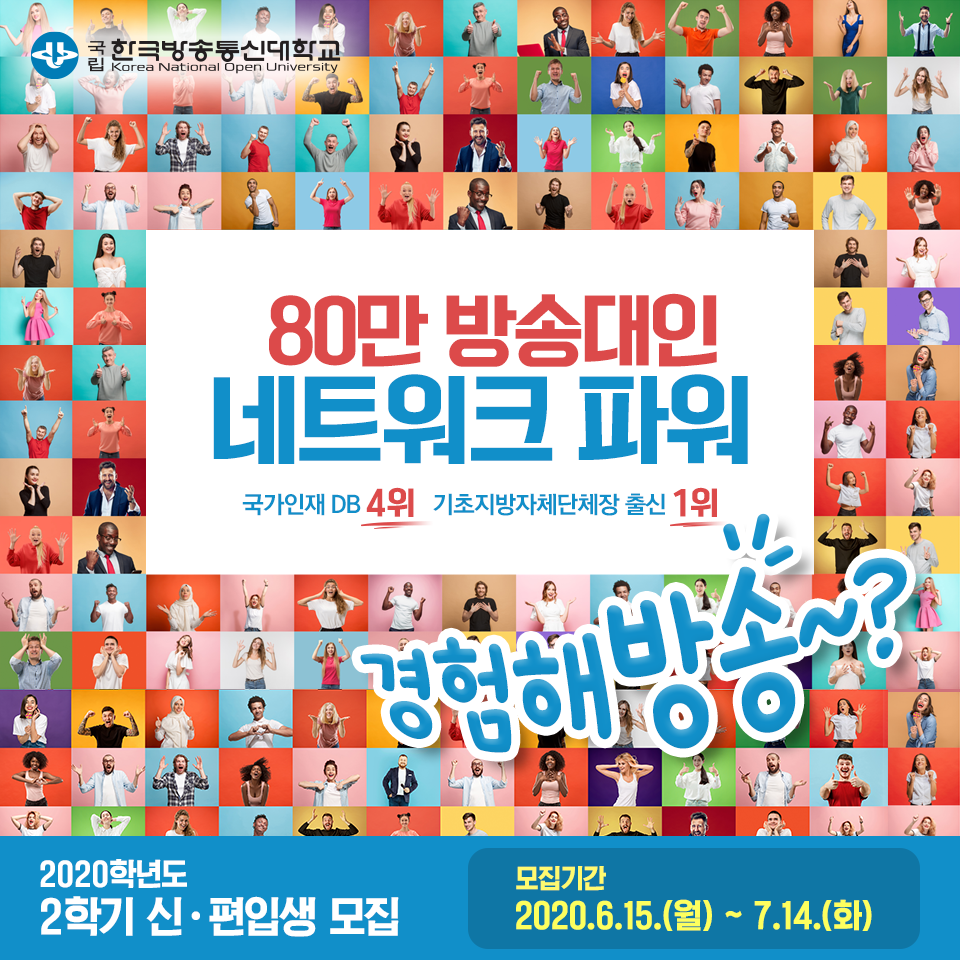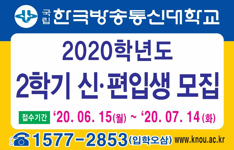 [입시안내 포스터] 한국방송통신대학교 신편입생 모집: 6.15(월) ~ 7.14(화)