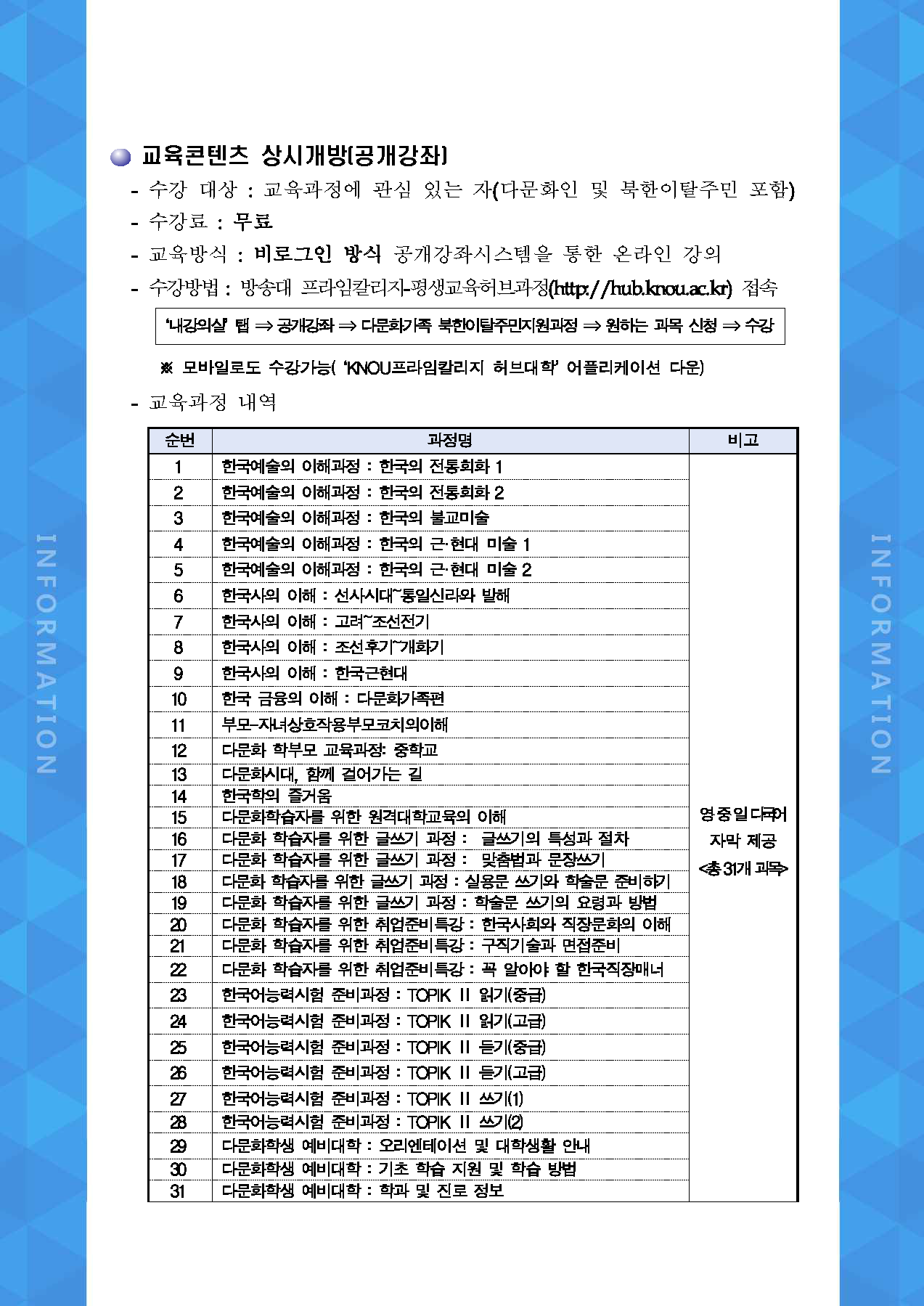 2020 3 - 1. 다문화가족 및 북한이탈주민 지원과정 안내.pdf0.26MB2020 3 - 2. 재직자기초과정(NCS) 과정 안내.pdf0.08MB방송대 프라임칼리지 홈페이지 바로 가기